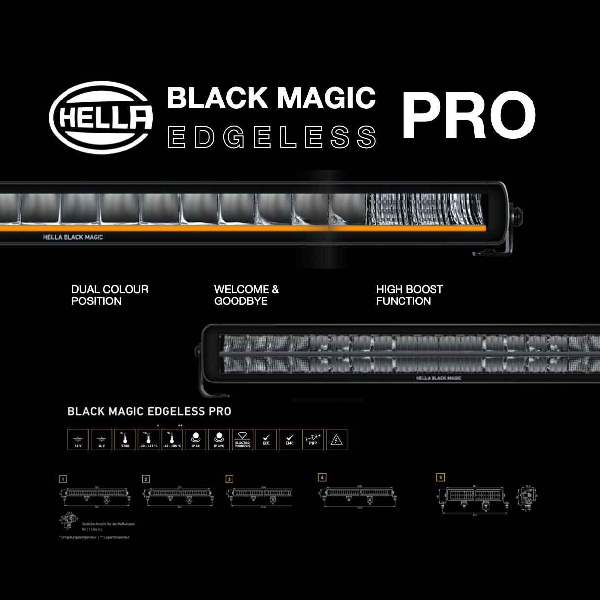 The HELLA Black Magic Edgeless Pro sets new standards in terms of functionality and design. With the high-boost function, it ensures optimum visibility and enhances the driving experience. The edgeless aluminium housing with electrophoresis coating offers more effective corrosion resistance and longevity under challenging conditions