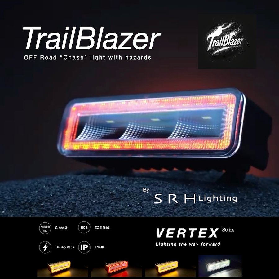 The TRAILBLAZER serves as a multifunctional rear light combining reverse/flood, high intensity red and high intensity amber lights with built-in hazard signalling. It offers four distinct lighting modes: a red light for additional braking indication, a steady amber warning light, an amber hazard flash, and a white main light. Engineered specifically for off-road use, this versatile light enhances safety and visibility in challenging environments.