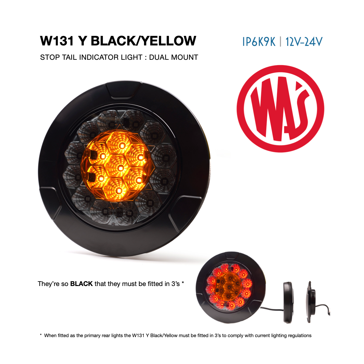 Designed with compliance in mind, at least three lights per side are recommended when using the W131 Y as your primary rear lighting solution to meet current road safety regulations.